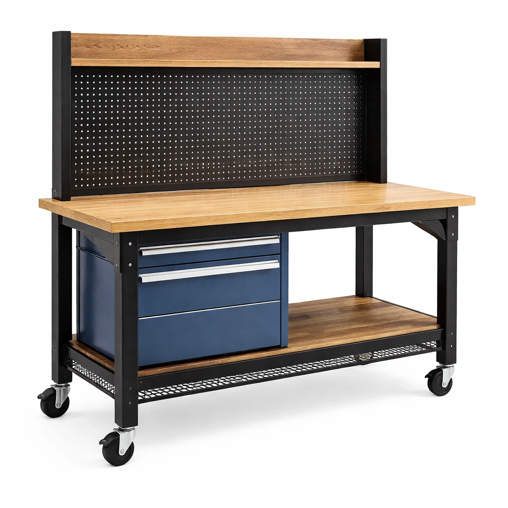 Funcionalidad: Incluye cajones de metal y ruedas para movilidad