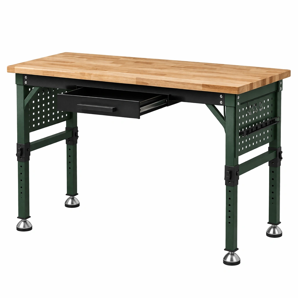 Materiales: Tablero de madera de roble, estructura de acero