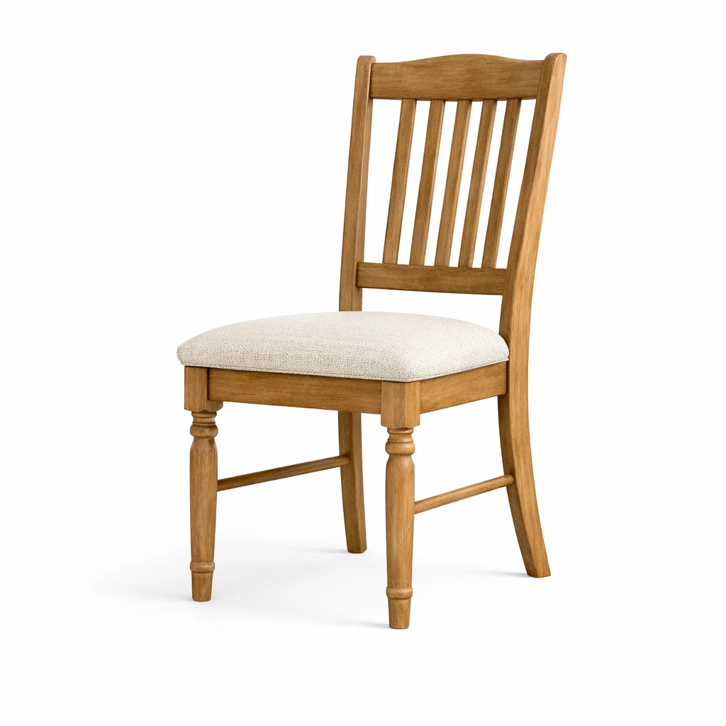 Detalles de diseño: Respaldo de barrotes, asiento acolchado.